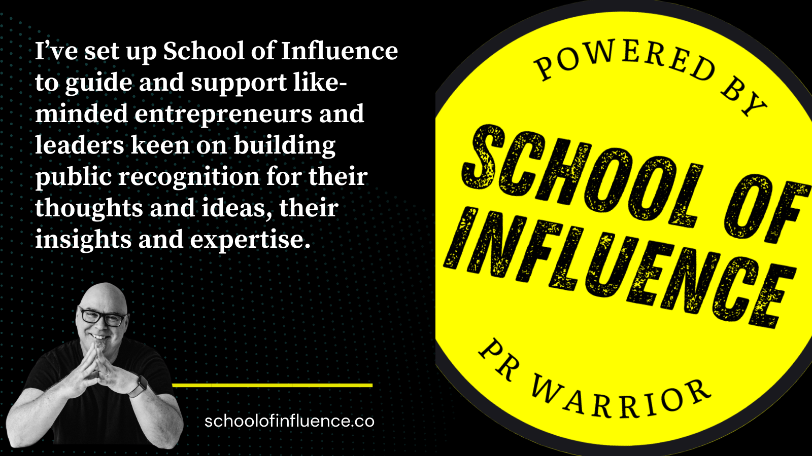 That’s why I’ve set up PR Warrior’s School of Influence: to guide like-minded business owners and leaders who are keen to elevate their personal brand in a strategic, professional and respectful way, as well as build public recognition for their thoughts and ideas, their insights and expertise.