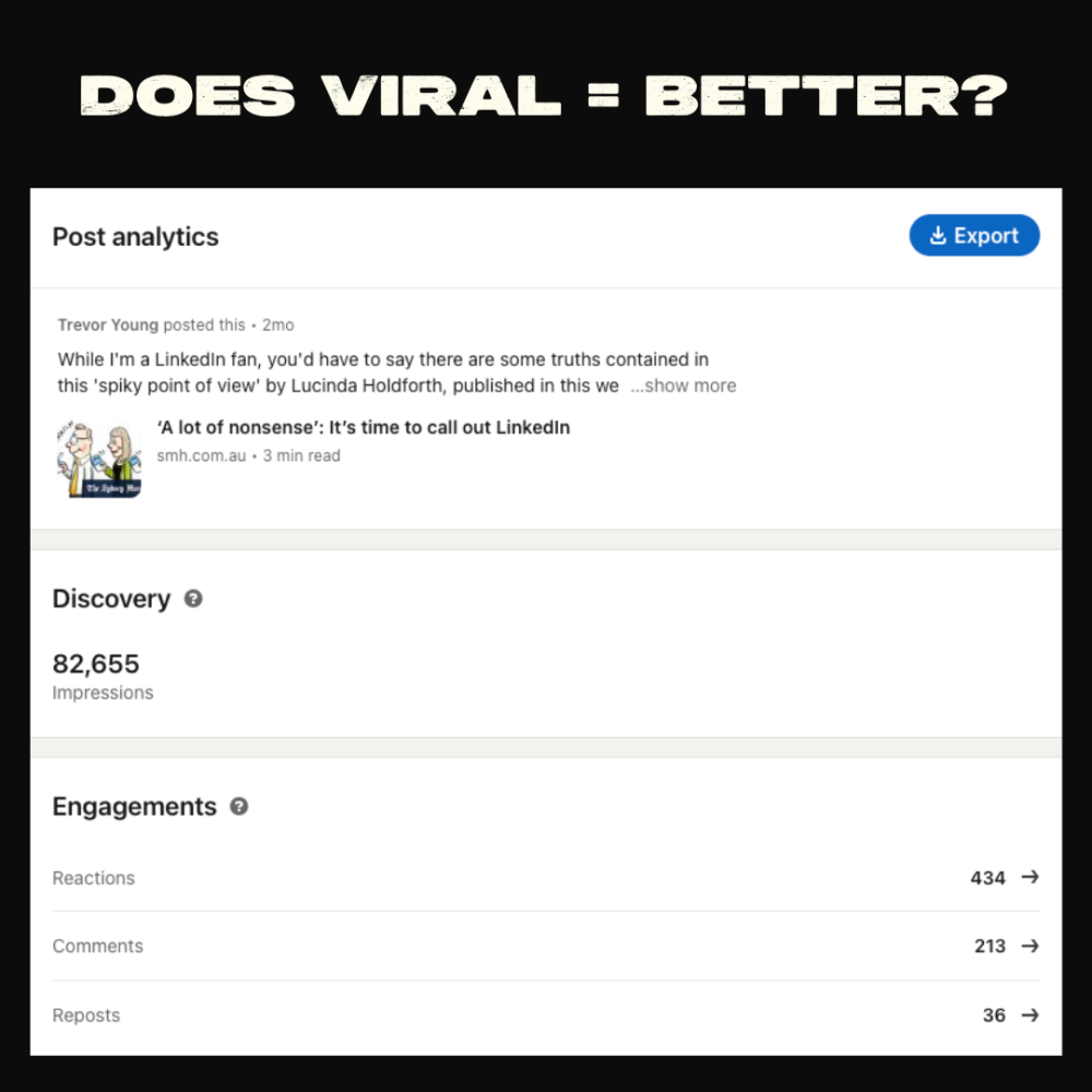 On LinkedIn (indeed, most social channels) there's an obsession with audience reach. I get it, we've all fallen foul of this vanity metric at some point.