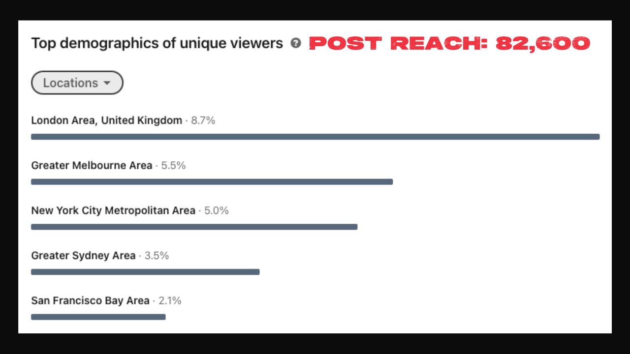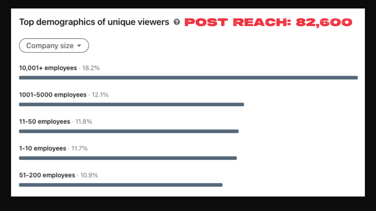 The goal, of course, is to chip away at building and maintaining sustainable growth and relevance on LinkedIn. For me, that is reaching (and hopefully resonating with) the right people i.e. those running the right-sized businesses, in the right locations.