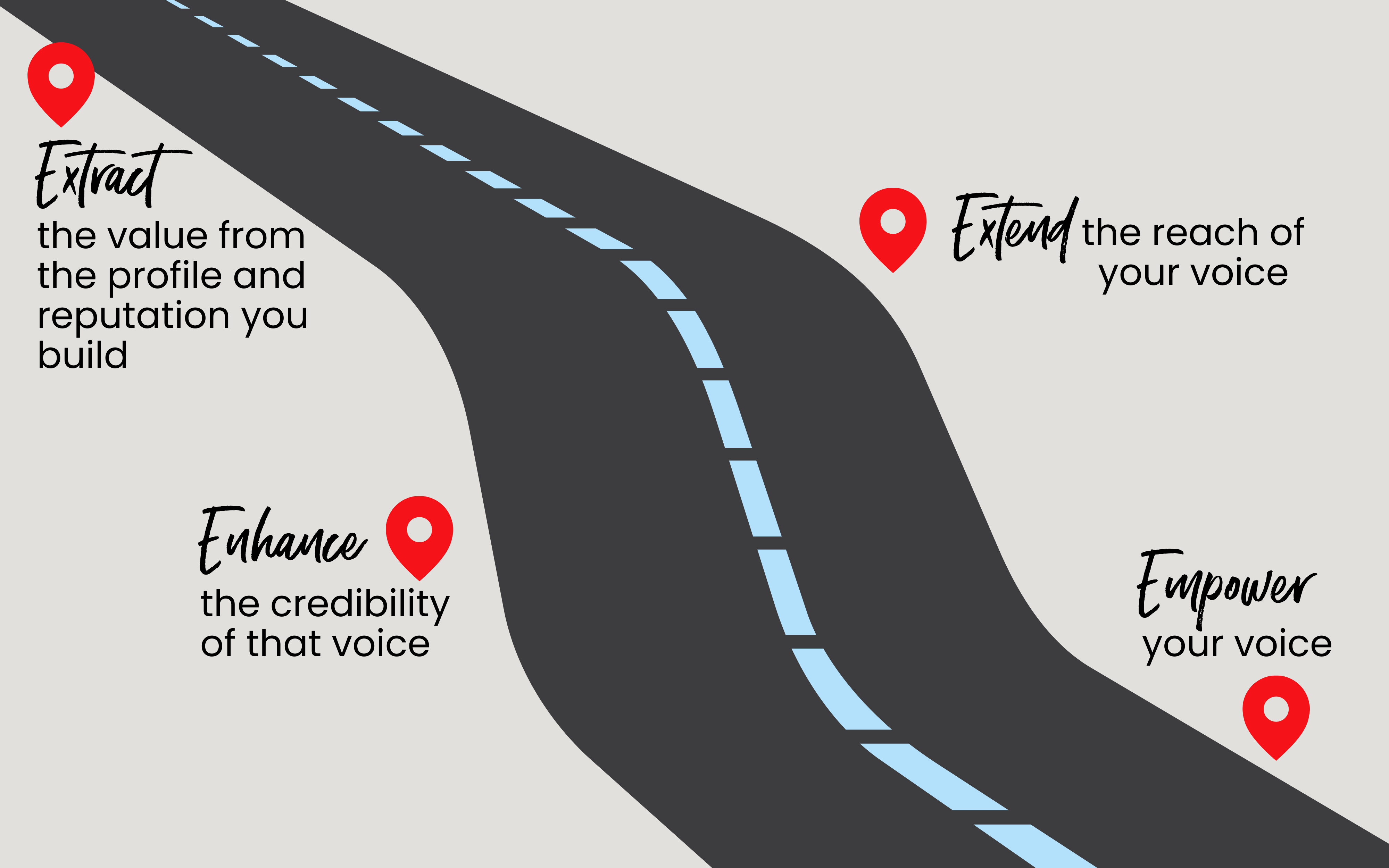In short, it’s about building your audience through media and influencer relations, public speaking, and strategic networking.