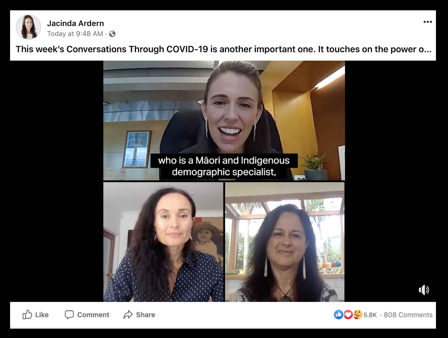 I've loved how the New Zealand Prime Minister has communicated during these challenging past few months, especially her video conferencing calls with subject matter experts (dubbed "Conversations Through COVID-19"), plus her casual live stream chats with the public via Facebook