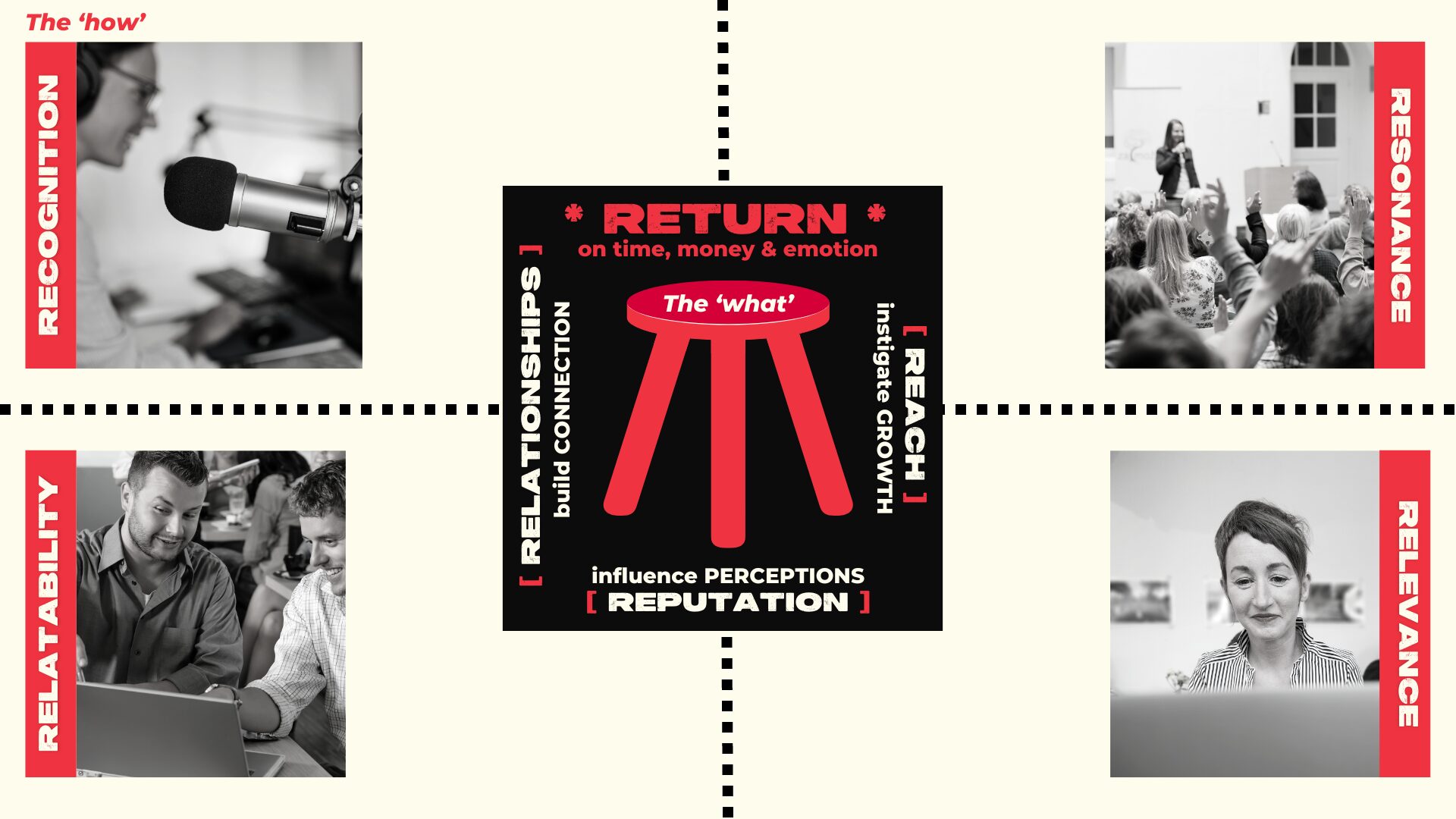🔴 RECOGNITION - Becoming known and remembered for all the right reasons i.e. what it is you do, and stand for. THINK: strategic visibility