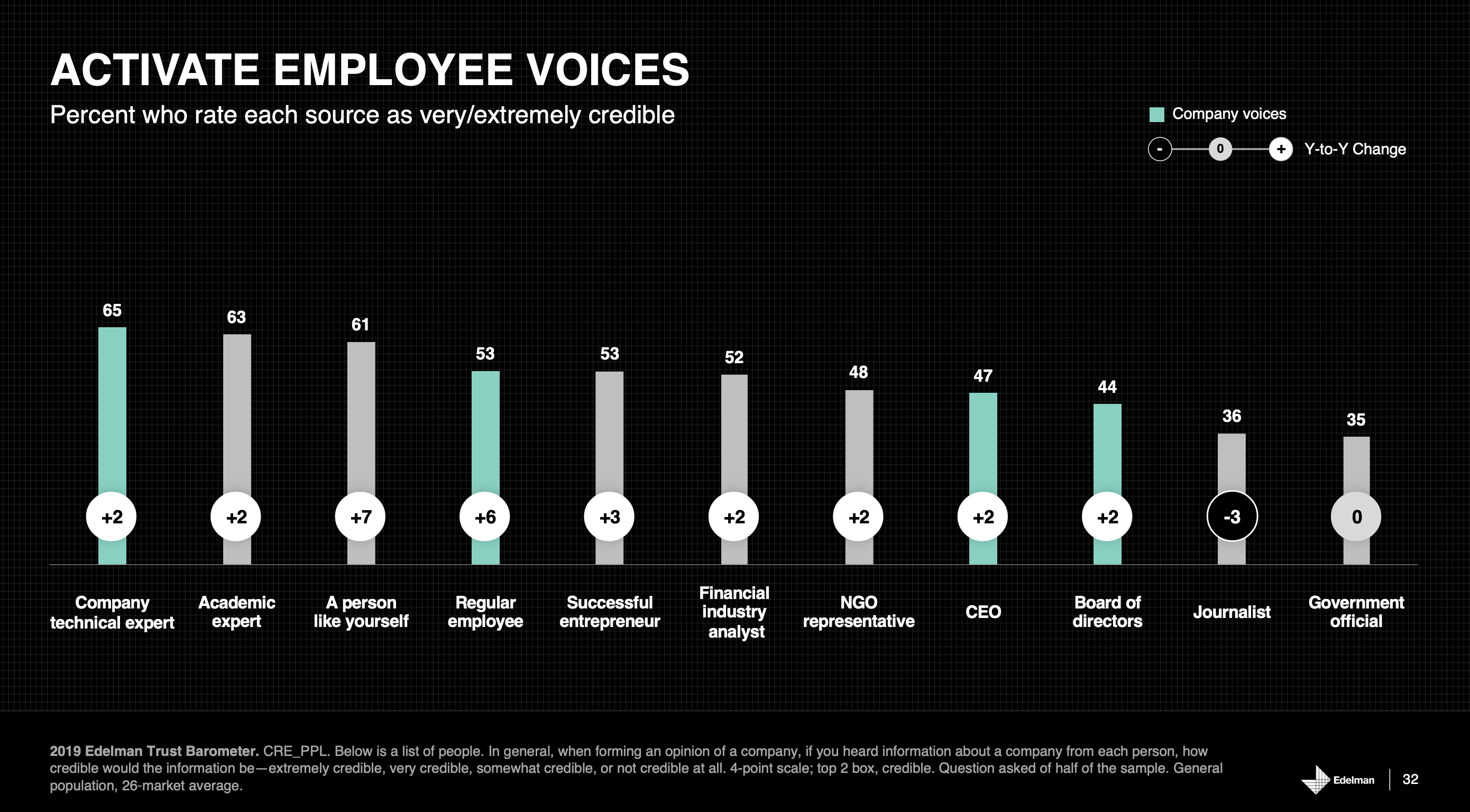 According to the Edelman Trust Barometer (see slide below), we trust company technical experts more than anyone. Interestingly, this has been the case for many years.