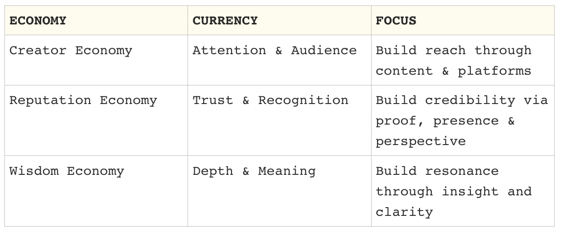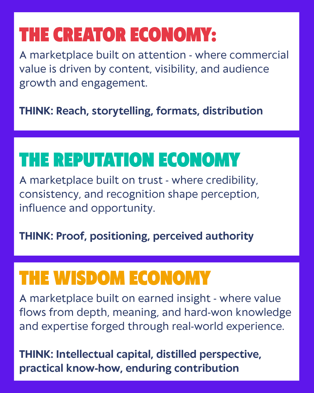The most magnetic and commercially valuable personal brands don’t live exclusively in one of these economies, they move fluently across all three.
